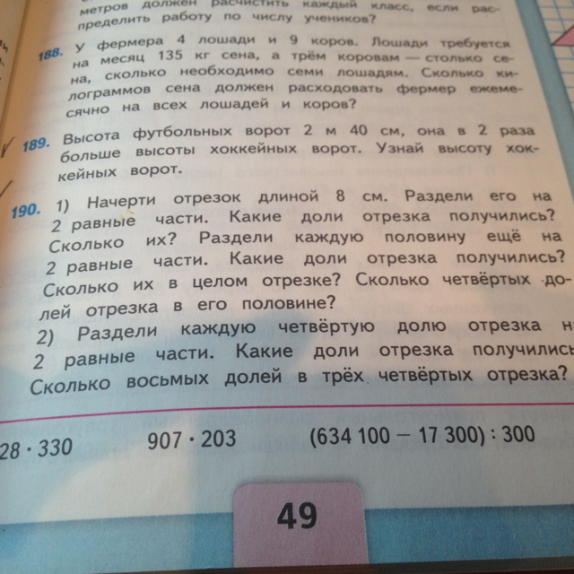 1)8см:2=4см (1/2 доля от 8см)