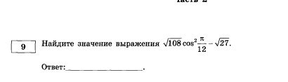 =((1+cos(2*пи12))/корень из 4)*корень из 108 - корень из 27 =