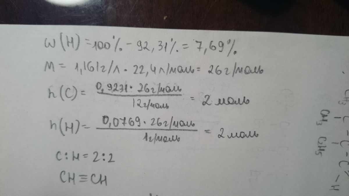 выведите молекулярную формулу углеводорода массовая доля углерода составляет 92.31% Плотность этого вещества составляет 1,161г/л (н.у)