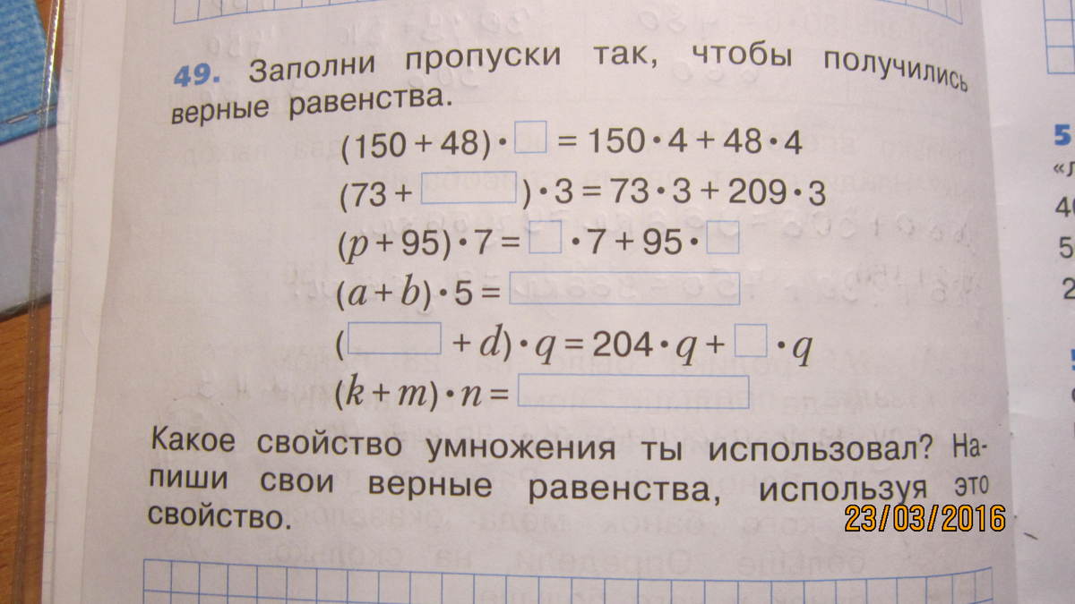 Свойство умножения суммы. При умножении суммы на число можно умножить на него каждое слагаемое в отдельности и полученые результаты сложить.