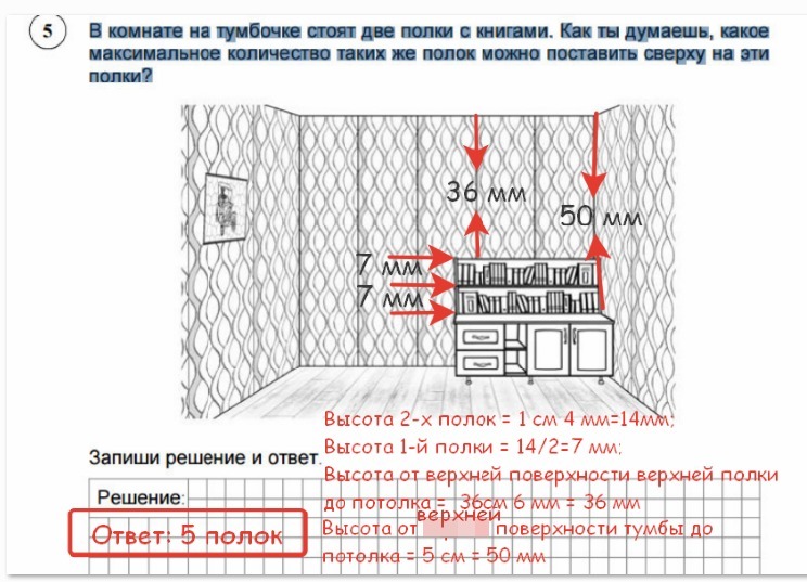 1. Высота 2-х полок, которые стоят на тумбе=1 см 4 мм=14 мм.