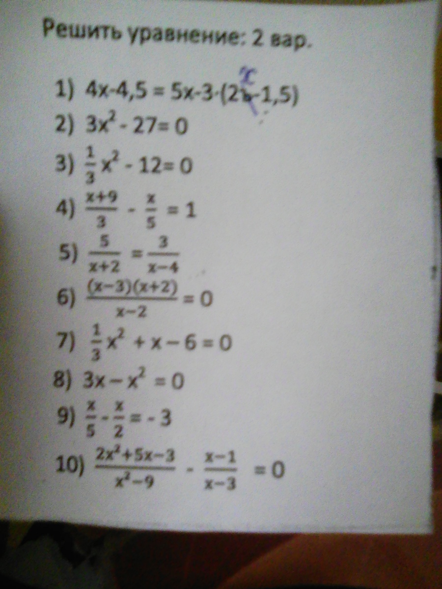(x+3)(x-0.5)-подставим в числитель первой дроби вместо 2x^2+5x-3; получим выражение:(((x+3)*(x-0/5))(x^2-9))-((x-1)(x-3))=0. Дальше сами решайте.