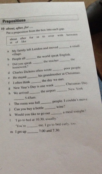 h) He arrived AT the airport OF(IN) New Y. AT 5.45...