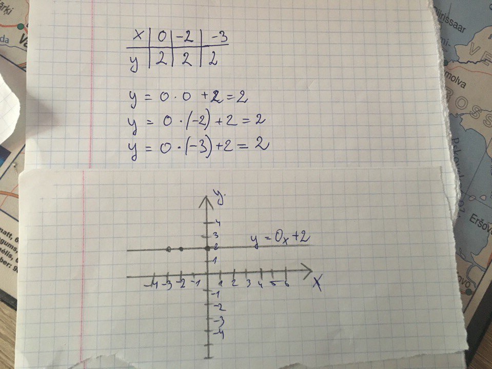 Y (следовательно) = 0*1+2=2 и т.д. с остальными числами. Потом просто ищешь точки в графике функций и отмечаешь точку на том месте