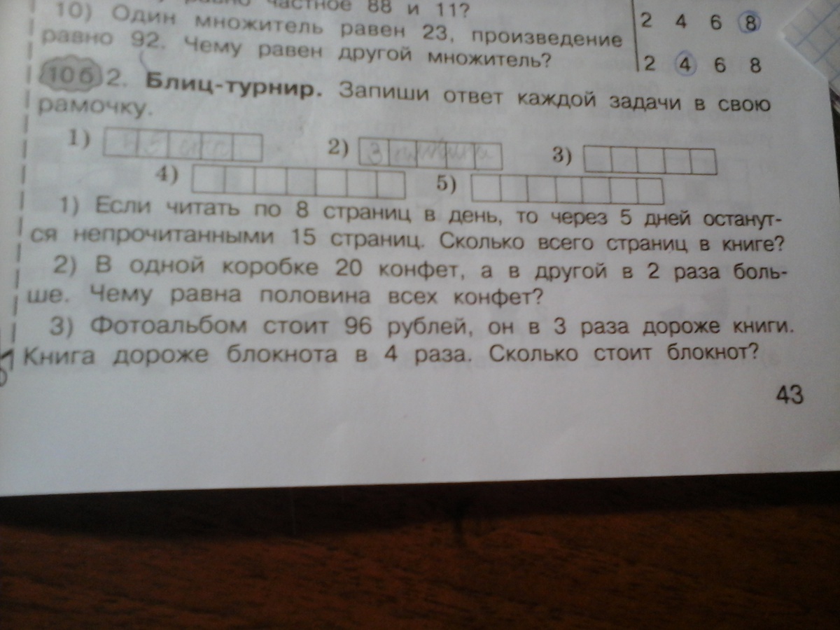 Ответ: 8 рублей стоит блокнот