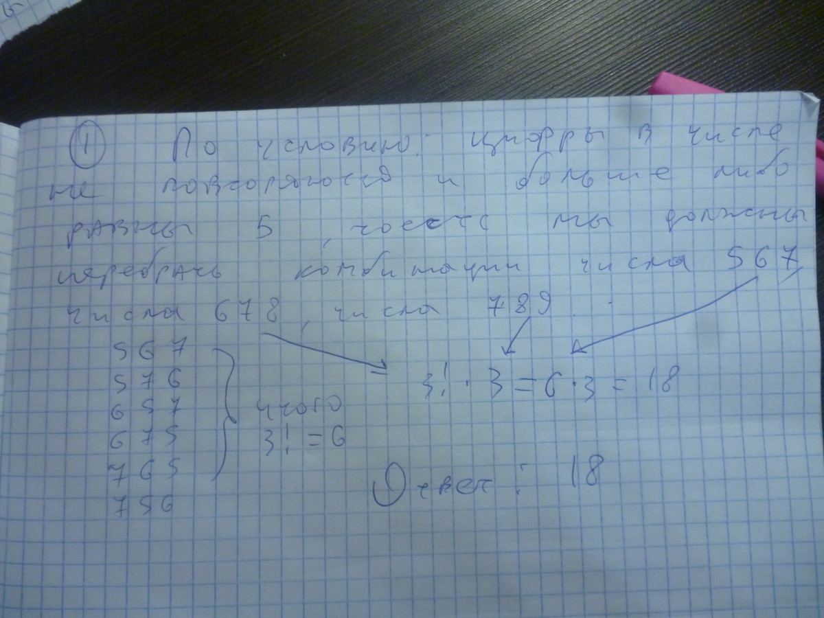 1)Сколько существует таких трехзначных чисел, в которых каждая цифра не