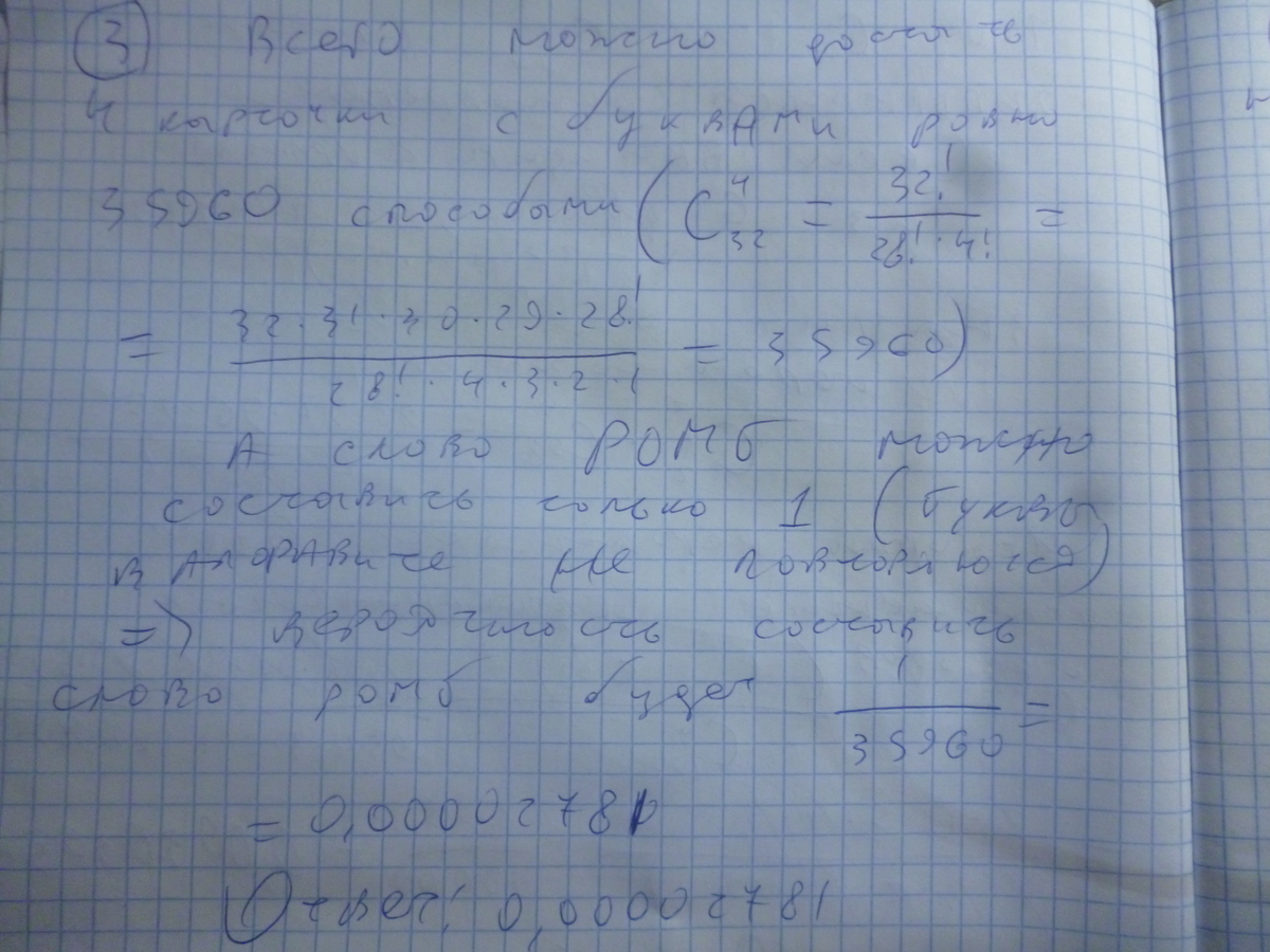3)С 32 карточек с буквами берут наугад 4