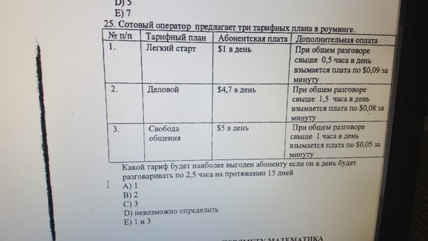 Третий тариф: абонентская плата за 15 дней составит $75, 150*$0,05*15=$112,5. Итого $187,5.