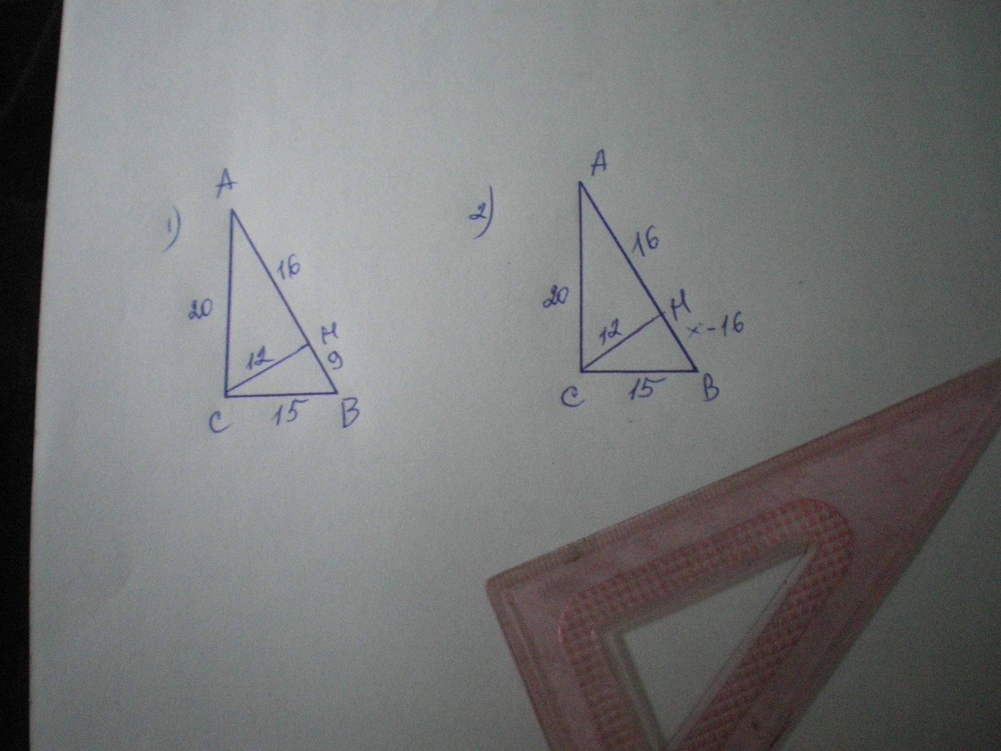 АН=16 см, АС=20 см, тогда СН=12 см (по определению египетского треугольника)