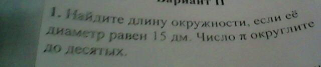 поэтому длина окружности = 3,1*15=46,5 дм