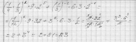 Найдите значение выражения (1/4*1/3)^2*9*2^5+(1/3)^-2*6*3*2^-1