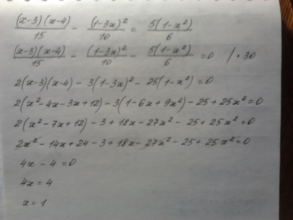 х²-7х+12/15-1+6х-9х²/10=5-5х²/6