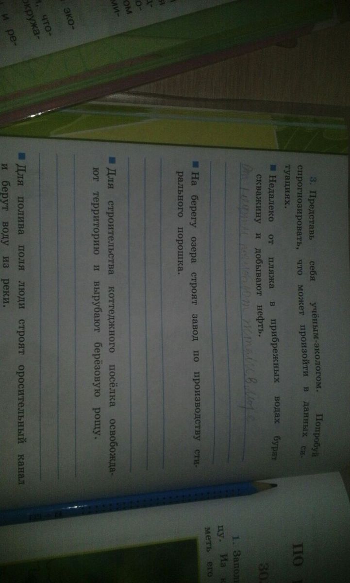 1. Нефть доберется до воды, и она засорится. От этого могут погибнуть все морские существа, возможно даже люди! 2. Если хоть немного попадет в воду, она станет мыльной, и вся будет отравлена химией. 3. В мире остается все меньше и меньше деревьев, если их всех вырубят, нечему будет выделять кислород! 4. Во первых, река станет меньше, возможно исчезнет совсем, во вторых речная вода заселена организмами, и они все погибнут. Вывод: Береги природу!