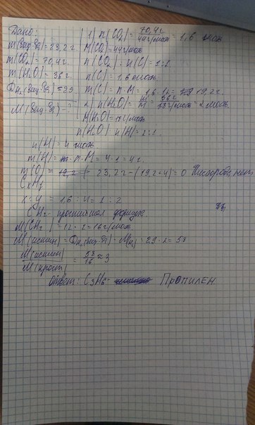 вывести молекулярную формулу газообразного вещества, при сгорании 23,2 г его выделилось 70,4г углекислого газа и 36,0г воды. Плотность данного вещества по по водороду равна 29