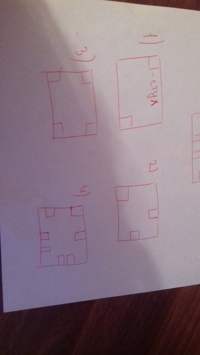 Как поставить 2 стула около стен комнаты так что бы возле каждой из 4 стен стояло по одному стулу?Как поставить 3 стула так что бы возле каждой из 4 стен стояло по одному стулу?Как поставить 4 стула возле стен комнаты что бы возле каждой из 4 стен стояло по 2 стула?Как поставить 7 стульев возле 4 стен комнаты так что бы возле каждой стены стояло их поровну?