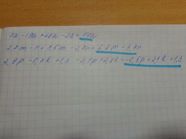 5) 2,6p - 0,7k + 1,3 - 3,1p + 2,8k