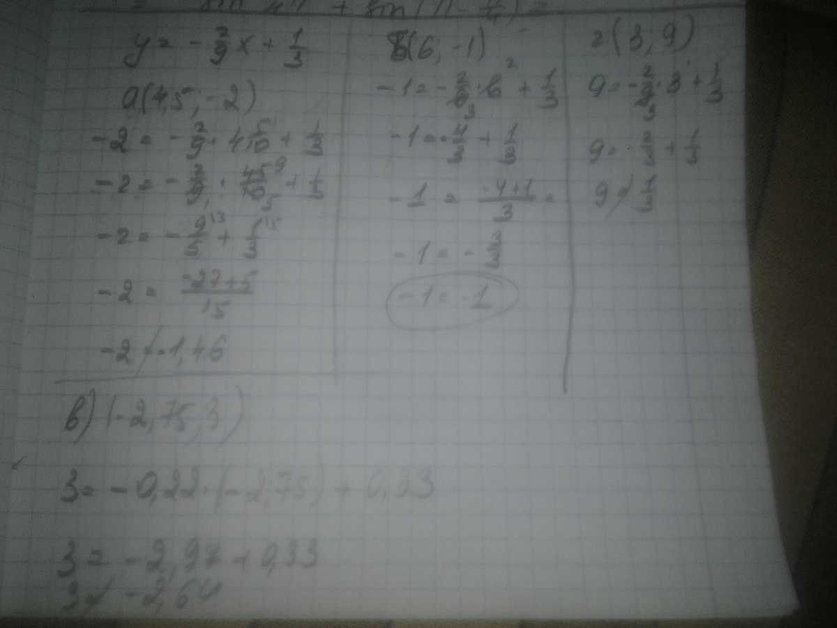 Пожалуйста очень надо.Какая точка принадлежит графику функции у=-2/9x+1/3?