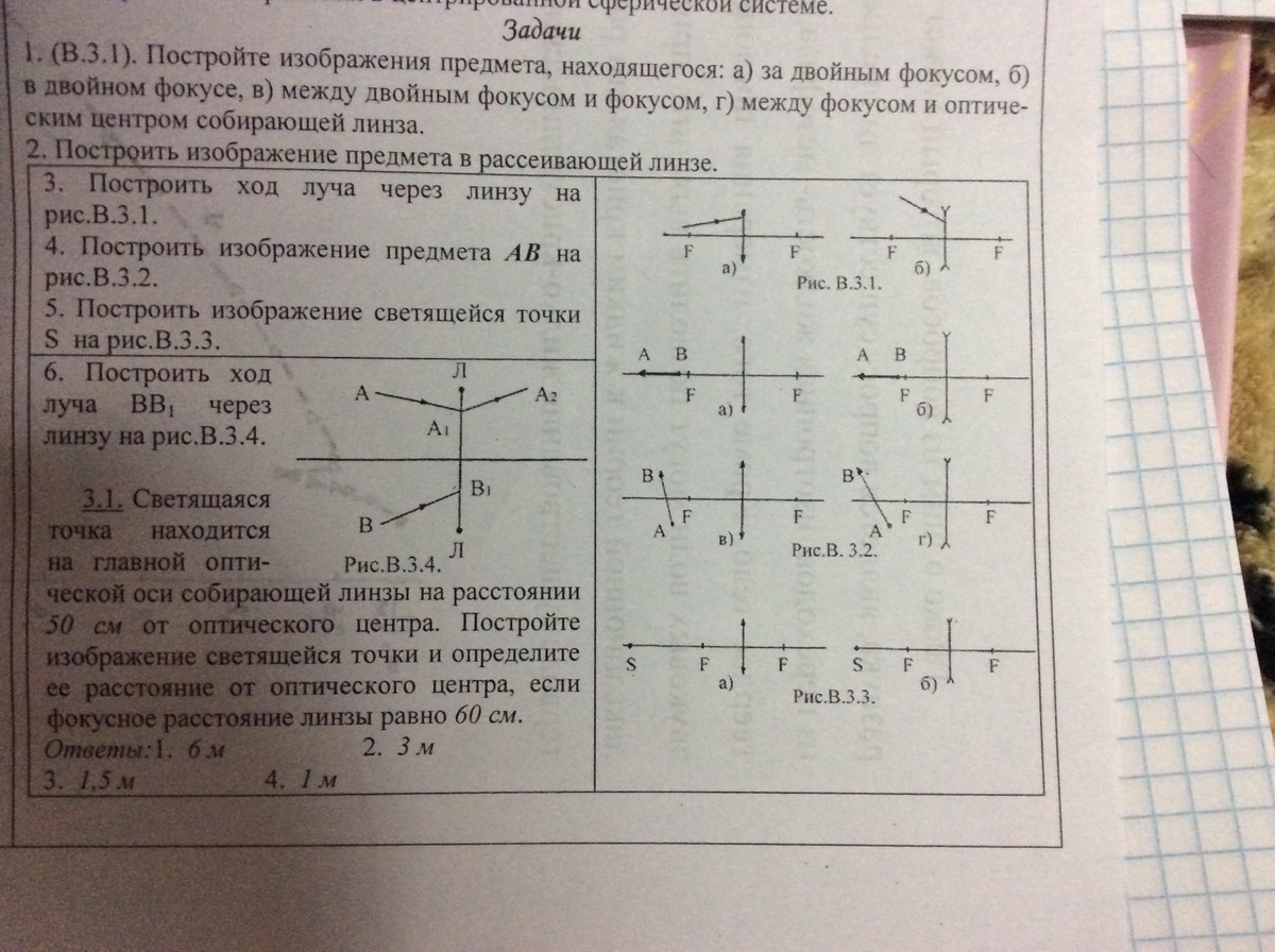 изображение получается за счет построения хода лучей: через оптический центр линзы и параллельно главной оптической оси линзы. Изображения предмета в 2F получится действительным, тех же размеров, перевернутым и на таком же расстоянии от линзы, т.е в 2F
