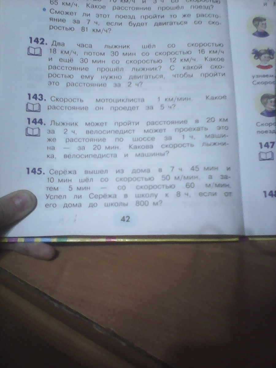 Скорость равна частному от деления расстояния на время (V=S:t)