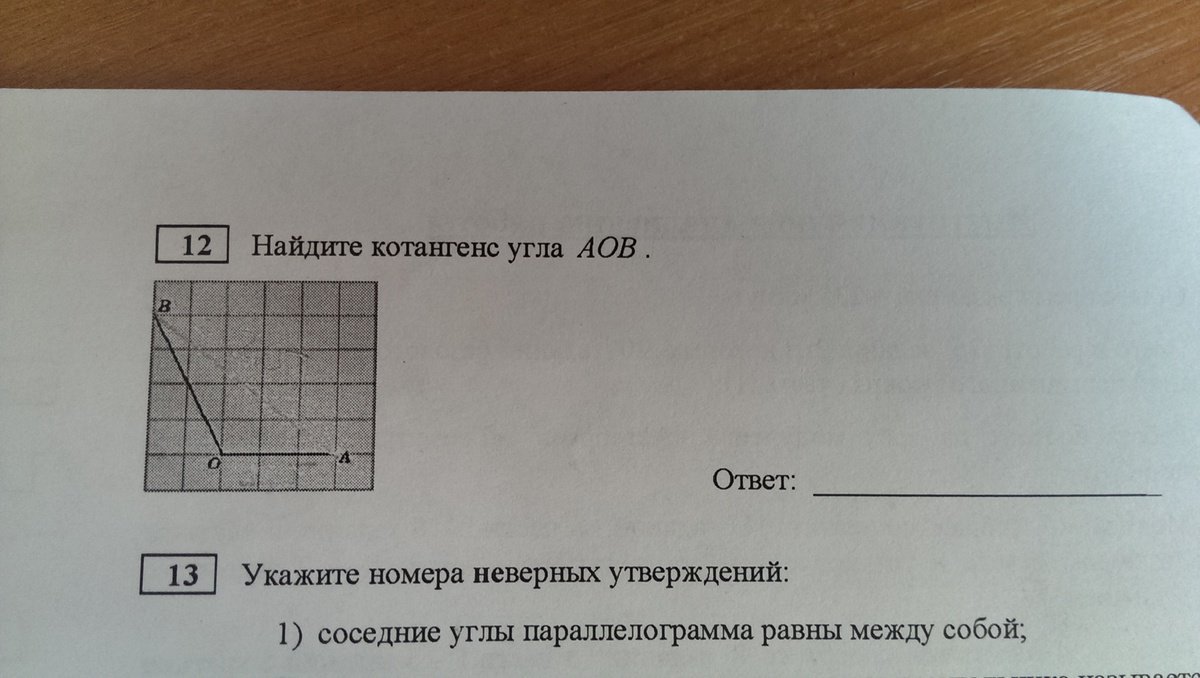 Это смежные углы. Теперь смотрим: тангенс смежного с АОВ угла равен 4/2=2