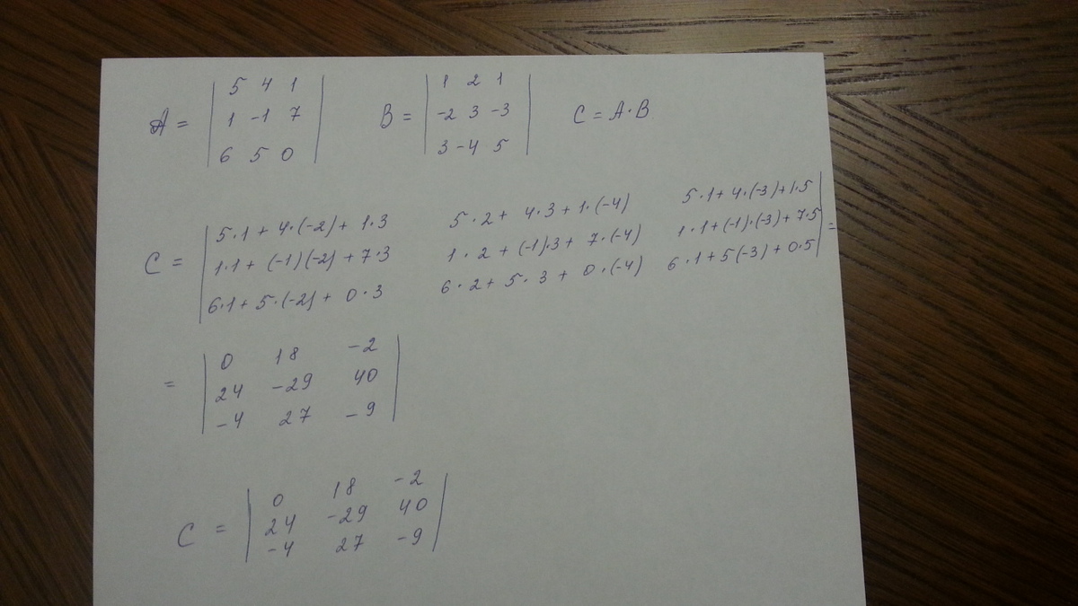 элементы матрицы произведения образуются суммированием результатов умножения соответствующей строки матрицы А на элементы соответствующего столбца матрицы В.