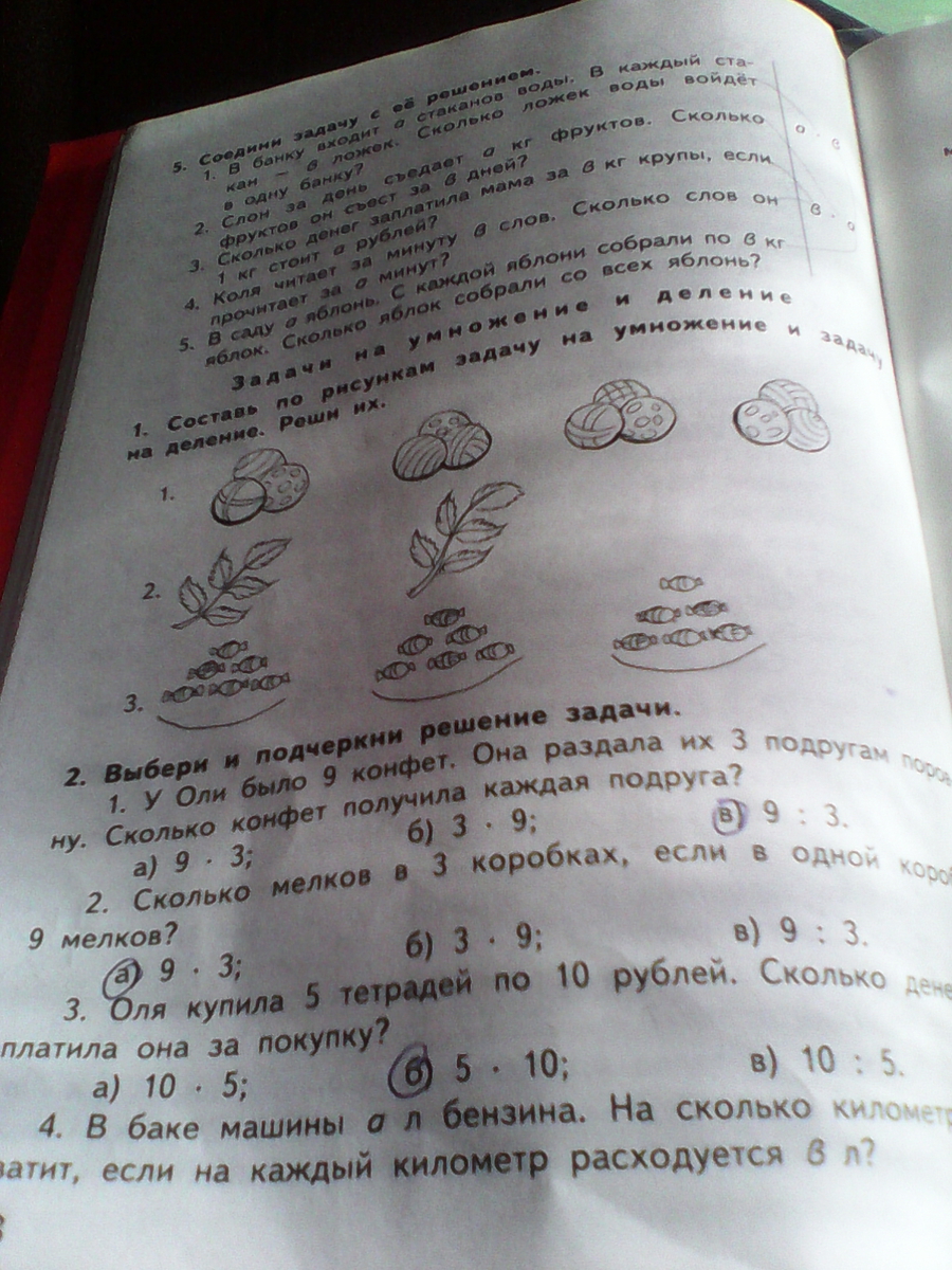 2) У Оли было 10 листиков на двух веточках поровну.По сколько листиков было на каждой веточке?