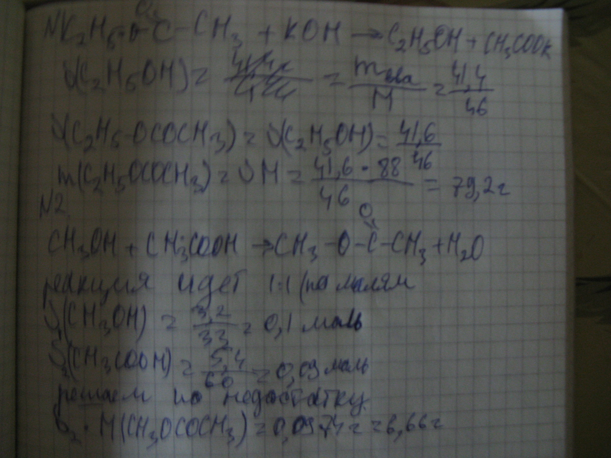 2)Рфссчитайте массу метилацетата,который можно получить из матанола массой 3,2 г и уксусной кислоты массой 5,4г?