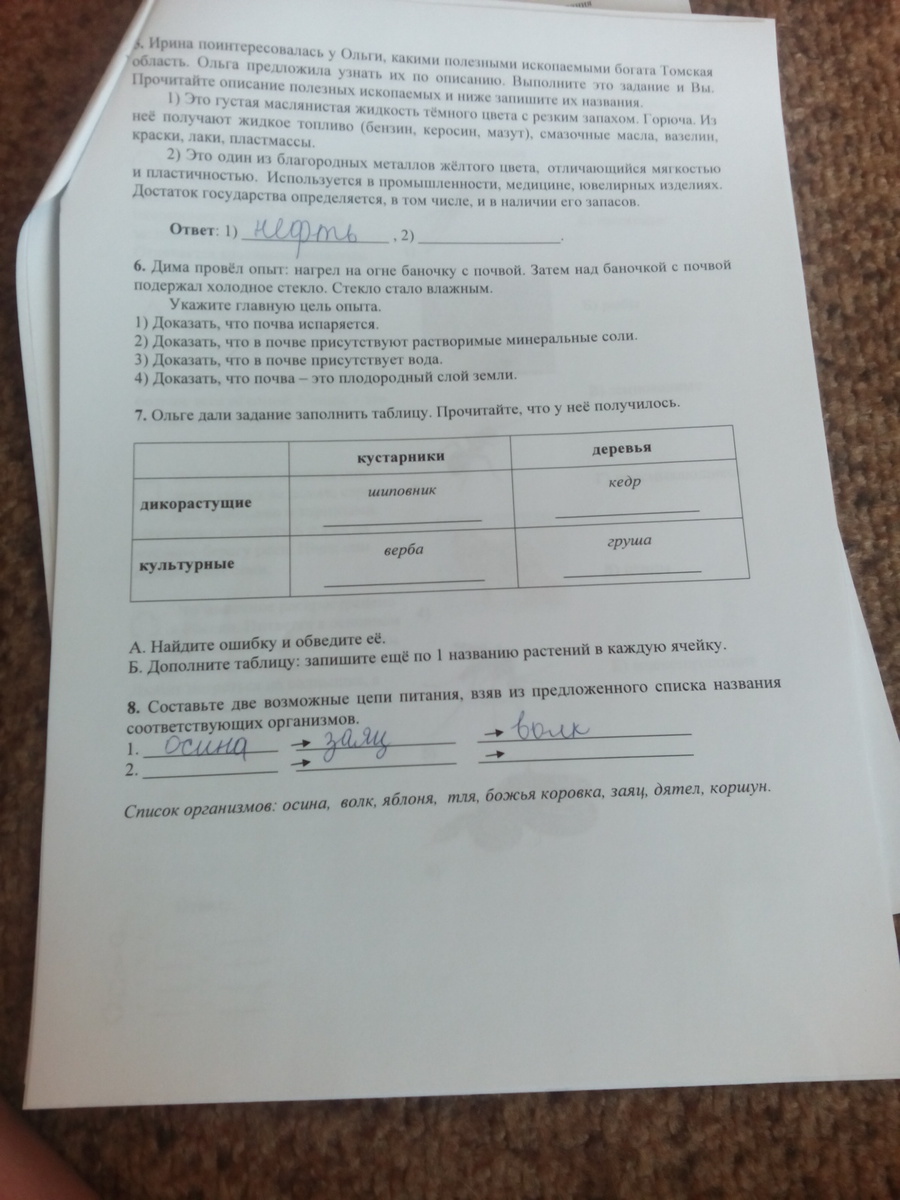 7) Дикорастущие кустарник -боярышник, дерево - берёза культурные: кустарник - смородина, дерево - яблоня