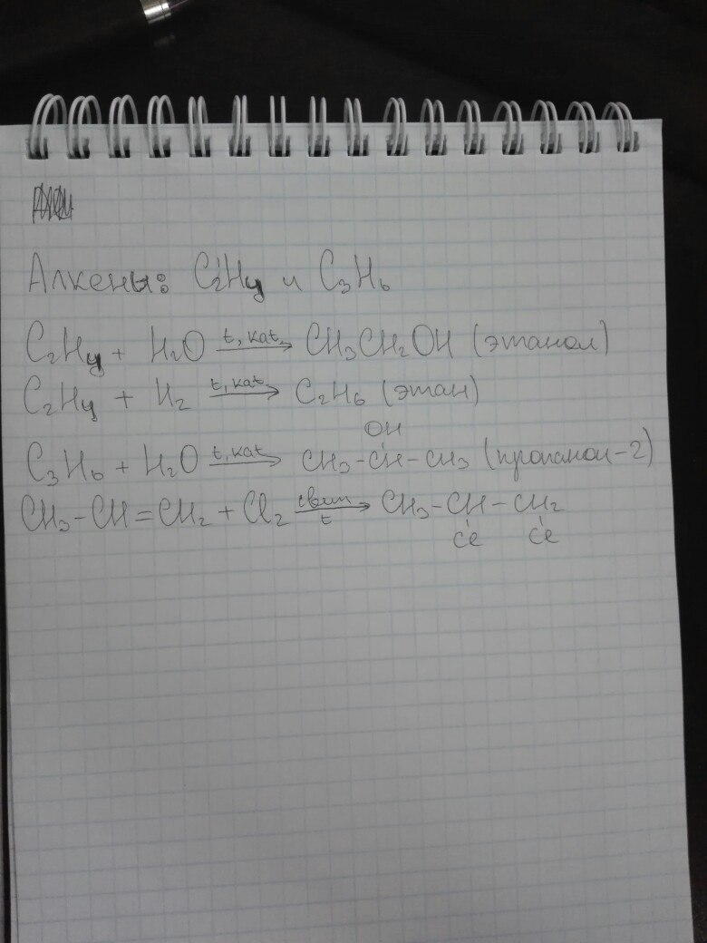 из списка предложенных веществ выпишите алкены напишите с ними 2 химические реакции: C2H6 , CH4 , CH3OH , CH3COOH , C2H4 , C3H6 , CH3NO2 , C6H12O6