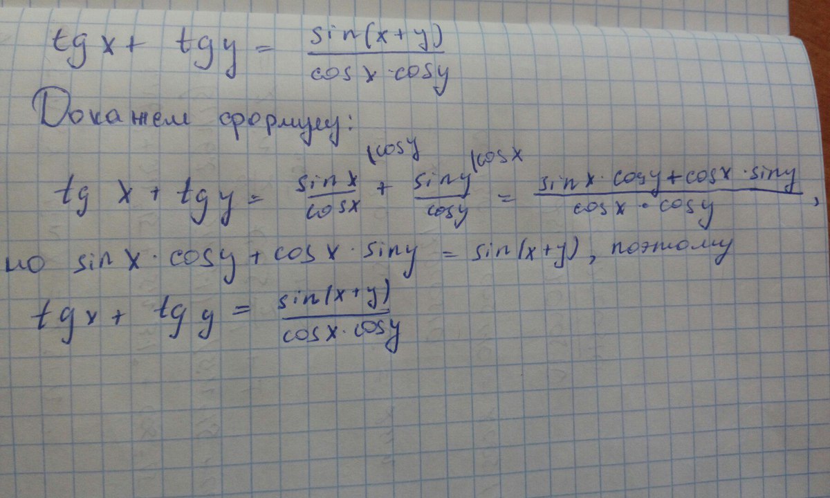 Преобразуй сумму тангенсов (выведи формулу) tgx+tgy.