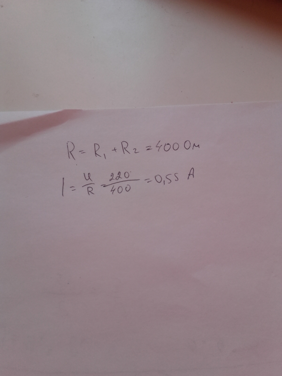 к сети напряжением 220 В последовательно подсоединены 2 лампы сопротивлением 220 Ом каждая. найти силу тока в каждой лампе.
