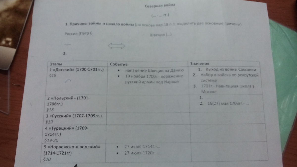 русский(1707-1709) боевые действия в россии после роторного вторжения шведской армии. победы рус.армии:у дер.Лесная сентябрь 1708г; под полтавой 27 июня 1709г. бегство остатков шведской армии во главе с королем карлом XII в турецкие владения.