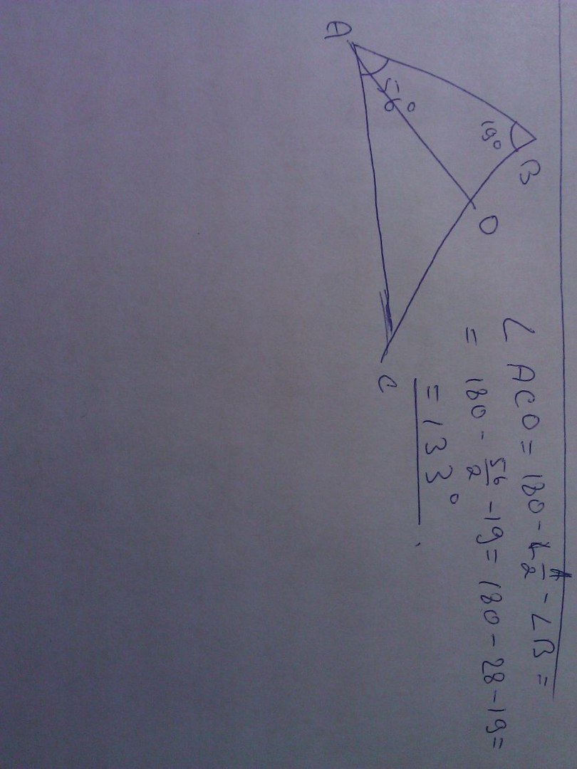 Чему равен угол ACO, образованный биссектрисой угла C?