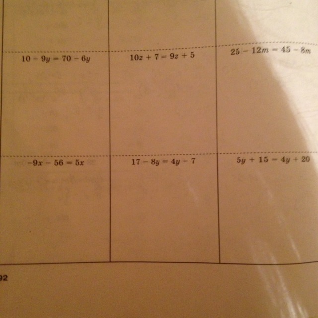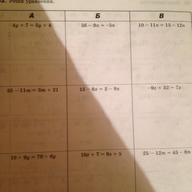 В) 10-11n=15-12n -9z+32=7z 25-12m=45-8m 25-12m=45-8m 5y+15=4y+20