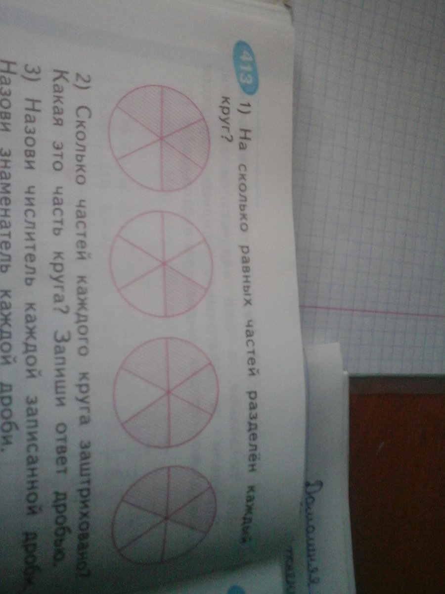 По последнему рисунку можно записать : 3/6 , тк 3 части из 6 заштрихованы (или нет , неважно) и 1/2 , тк ровно половина заштрихована (или не заштрихована )