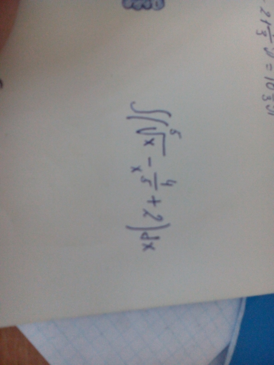 S ((x^1/5) - (x^4/5) + 2) dx = S (x^1/5) dx - S (x^4/5) dx + S 2 dx =