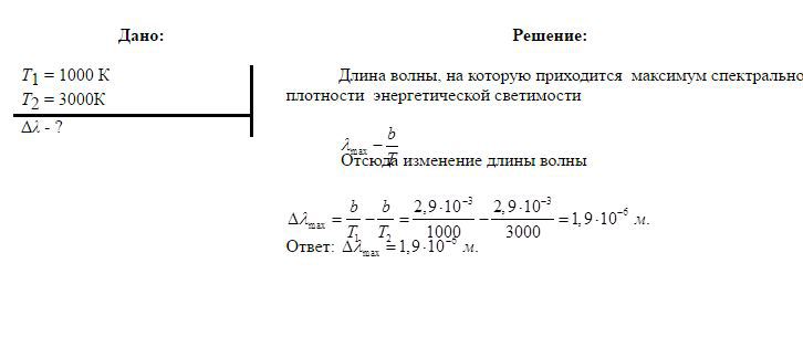 Темпаратура абсолютного чорного тіла змінилась при нагріванні від 1000К до 3000К. На скільки змінилась довжина хвилі, на яку припадає максимум