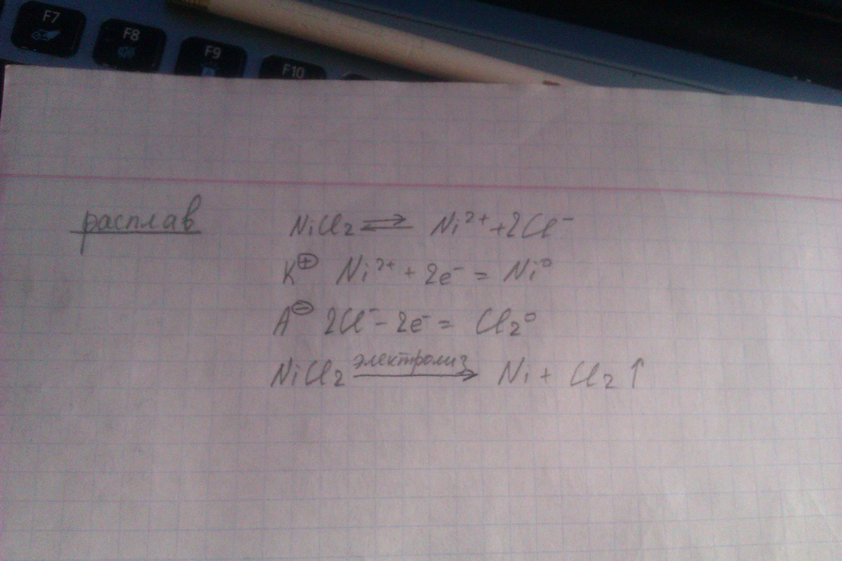 Помогите пожалуйста написать электролиз NiCl2 раствор и расплава. по возможности расписать подробно.