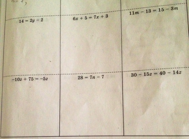 14=2y-2 -10z+75=-5z 6x+5=7x+3