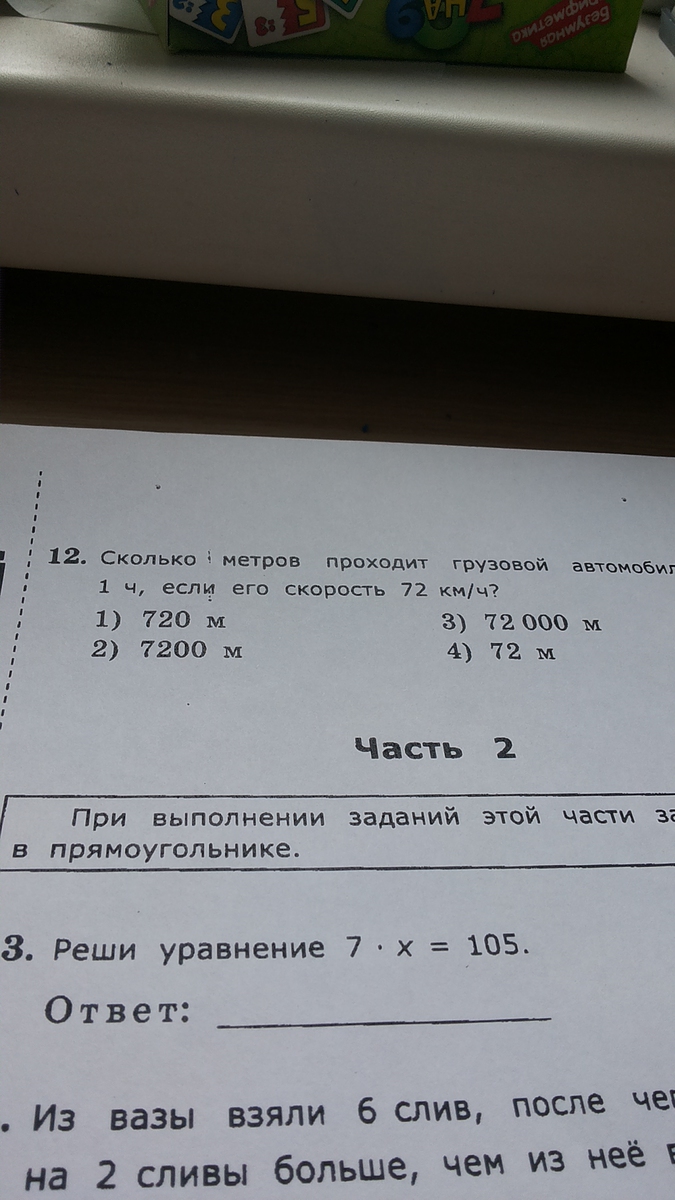 сколько метров проходит груз. автомобиль за 1 час есл его скорость 72 км в час?