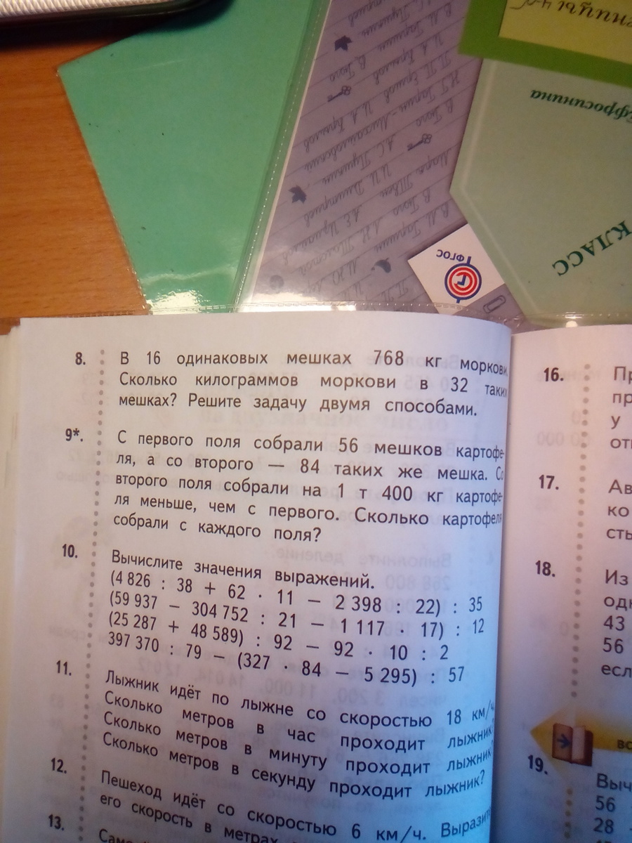 1 способ 1)768:16=48(кг)-в одном мешке. 2)48*32=1536(кг)-в 32 таких мешках. Ответ :1536 кг. 2 способ 1)36:16=2(раза)-больше. 2)768*2=1536(кг)-в 32 таких мешках. Ответ :1536 кг.