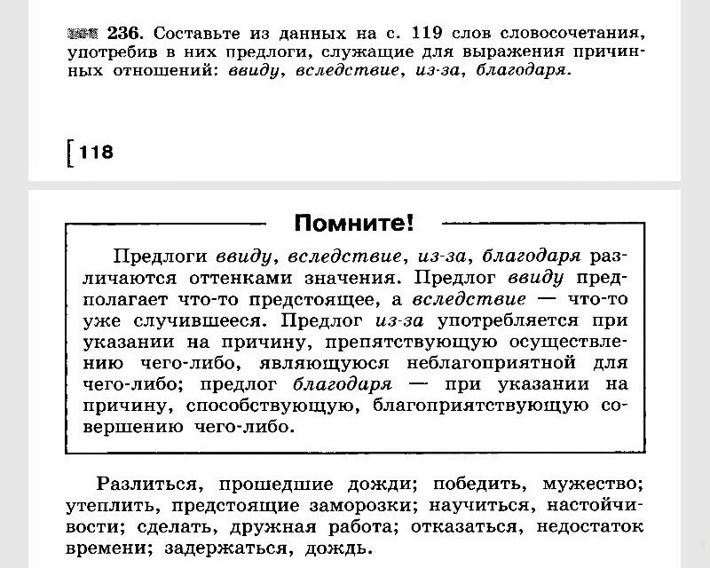 Разлиться вследствие прошедших дождей,победить благодаря мужеству,утеплить ввиду предстоящих заморозков,научиться благодаря настойчивости,сделать благодаря дружной работе,отказаться ввиду недостатка времени,задержаться из-за дождя