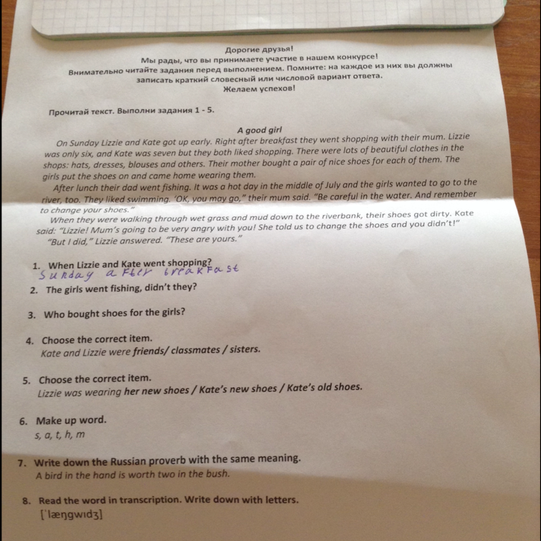 3.their mother/4.sisters/5.думаю her new shoes/6.maths/8.language