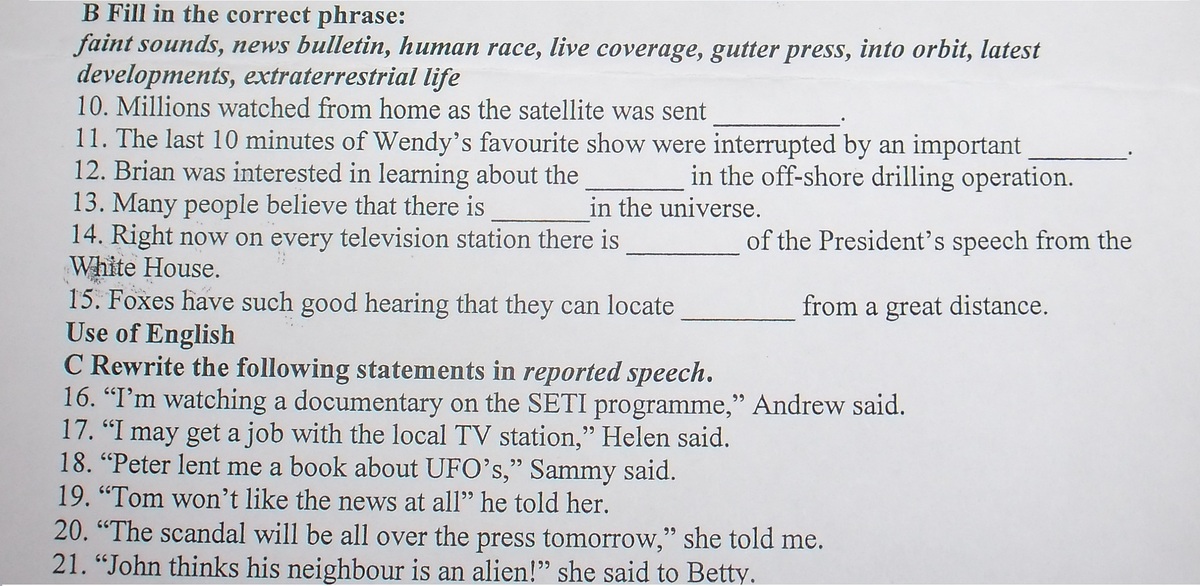16 Andrew said that he was watching a documentary on the SETI programme.