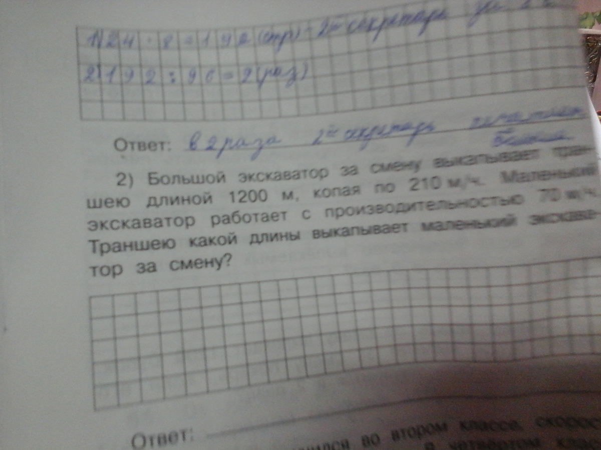 210 : 3 = 3 (раза) -------- во столько раз производительность маленького экскаватора меньше;