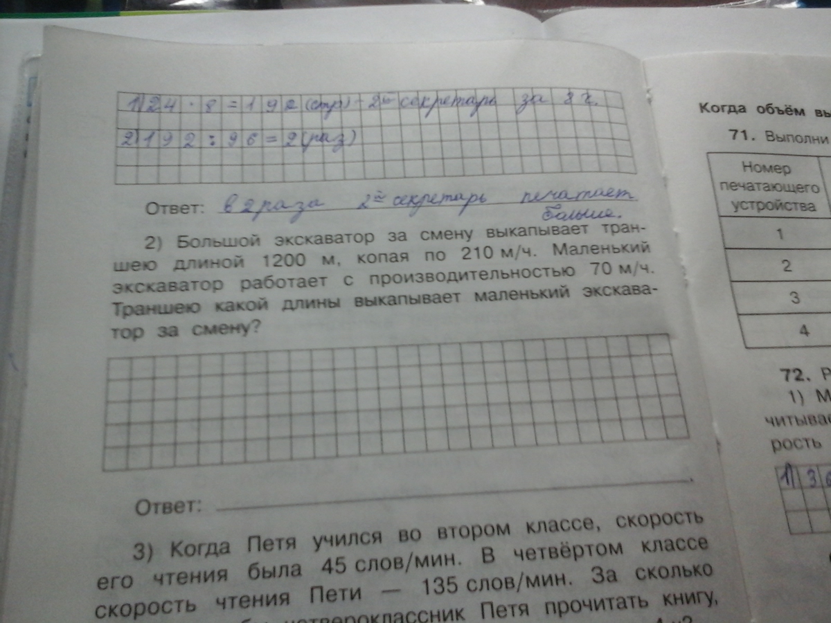 210 м/ч ÷ 70 м/ч = 3 раза - в три раза меньше производительность маленького экскаватора