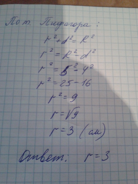шар пересечен плоскостью на расстоянии 4 от центра найдите радиус сечения если радиус шара равен 5