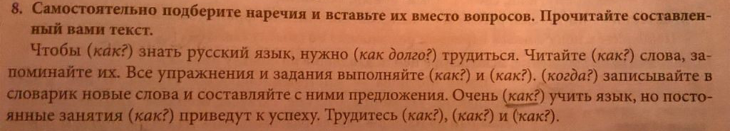Хорошо; много; правильно; чётко и правильно; всегда; трудно, быстро; усердно; прилежно; отлично.