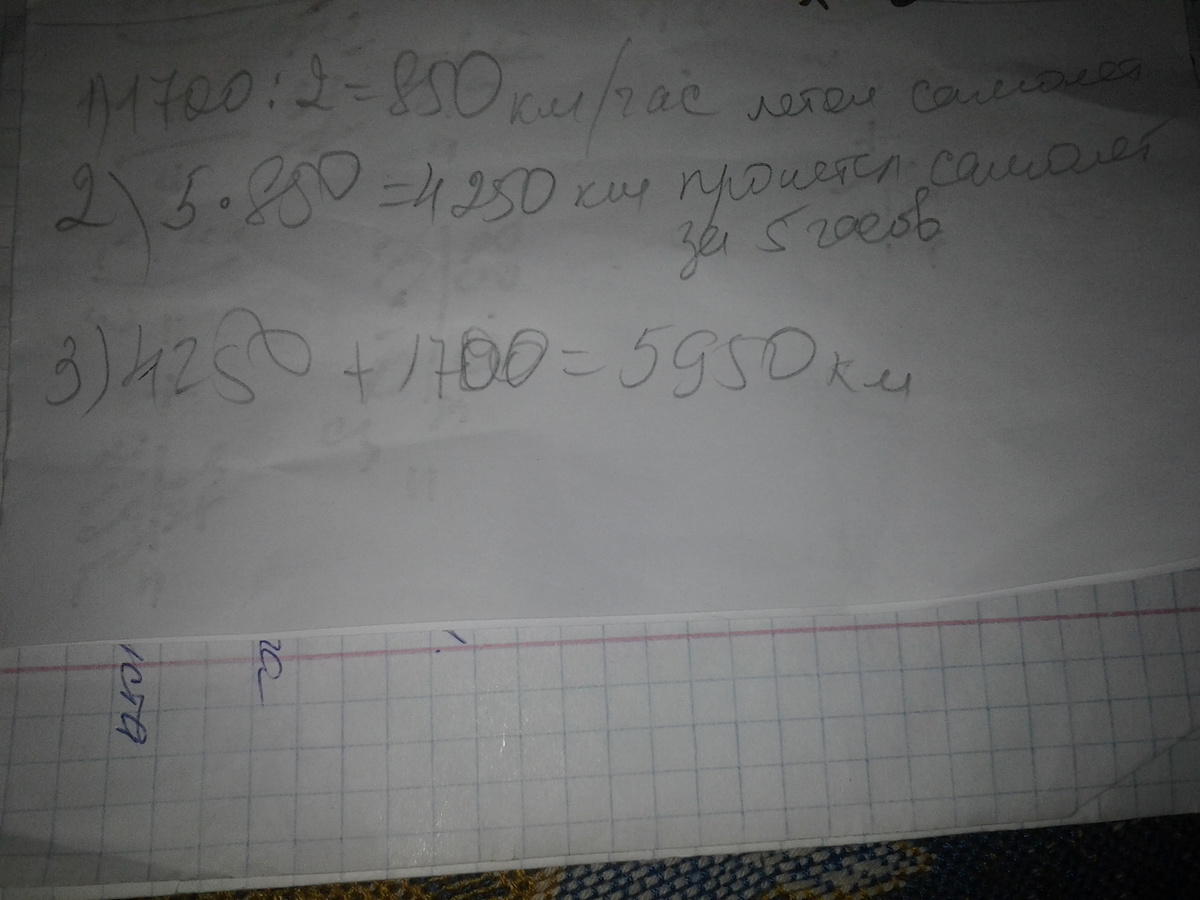 Самолёт пролетел за первые два часа пути 1700 километров . На оставшийся путь ему потребовалось при той же скорости на 3 часа больше . Сколько всего