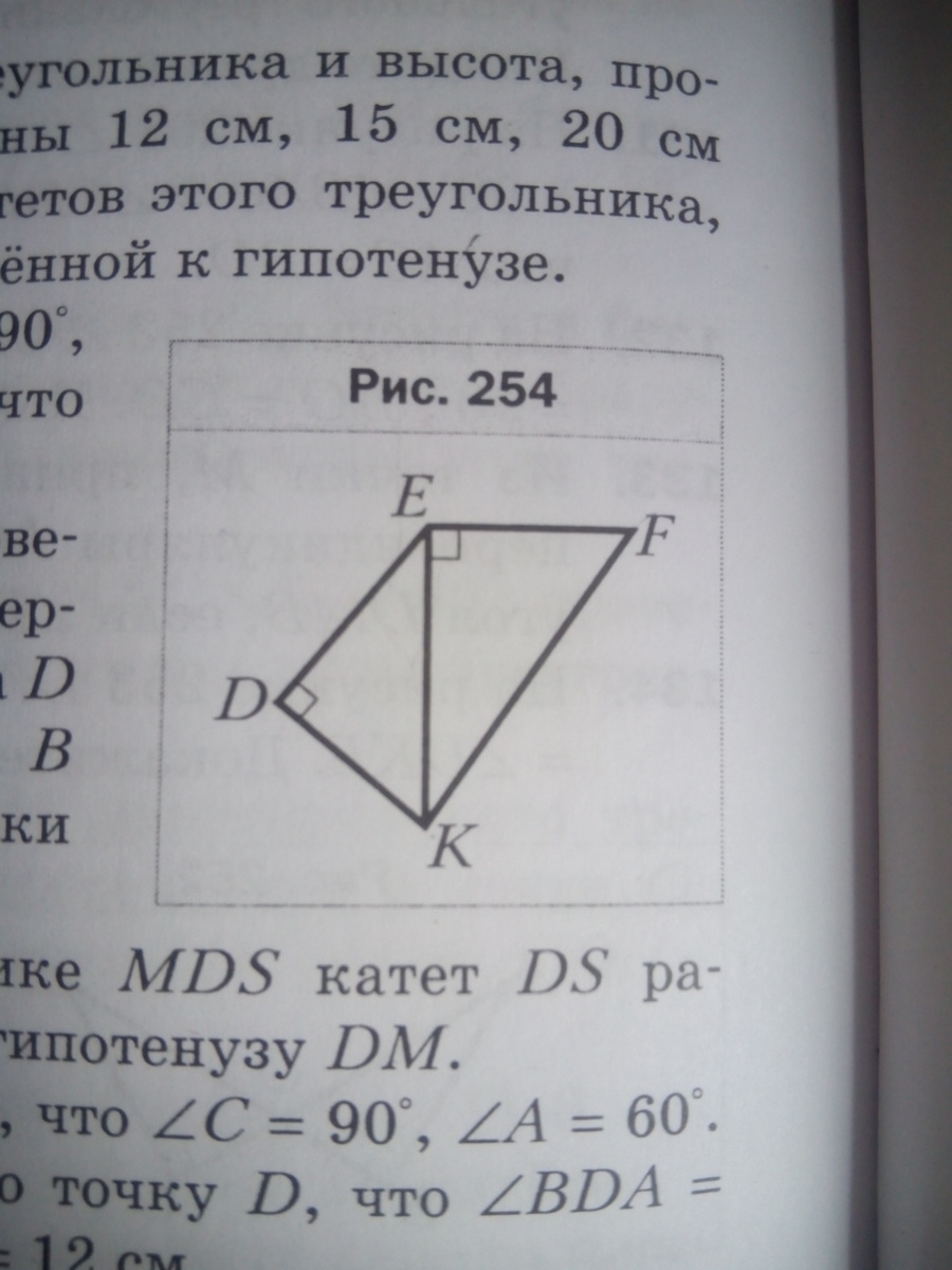 На рисунке 254 угол FEK=90°, угол EDK=90°. Докажите, что FK>DE.